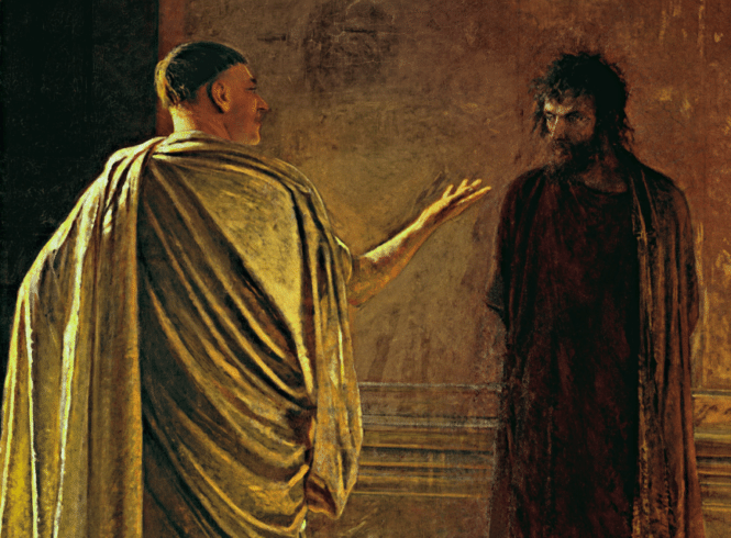 To je konec Pilátovy kličky. Chtěl se vyvléct z odpovědnosti za Ježíšovu smrt, ale zároveň si nepopudit davy. Proto – jak bývalo zvykem o Velikonocích – nabídl amnestii jednomu vězni. To byl chytrý tah. Pro Židy to má velký symbolický význam – ten jeden jakoby reprezentuje Izrael, který unikl z egyptského zajetí. No a Řím to moc nestojí. O jednoho buřiče méně nebo více. A navíc by Pilát velmi elegantně sprovodil ze světa tu nepříjemnou kauzu s Ježíšem. Proto volí tak jasné protiklady – nevinný Ježíš a proti němu zločinec Barabáš. Ale v tom se přepočítal. Dav skanduje Barabášovo jméno.